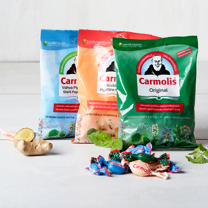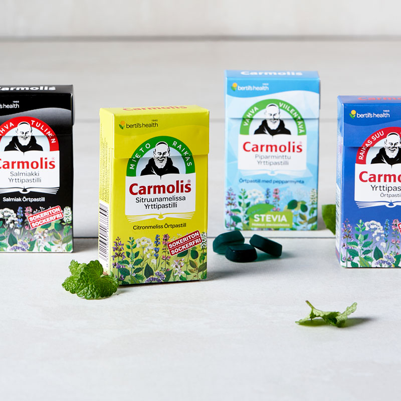 Carmolis ger inte bara en lindrande effekt, det är gott också. Mint och citron är friskt och fräscht, honung är mjukt och lent för smaklökarna och ingefära passar dig som vill ha lite mer riv i dina halstabletter. Örterna i våra örtkarameller eller örtpastiller är noggrant utvalda och kombinerade, för att du inte ska behöva välja mellan god smak och god effekt.